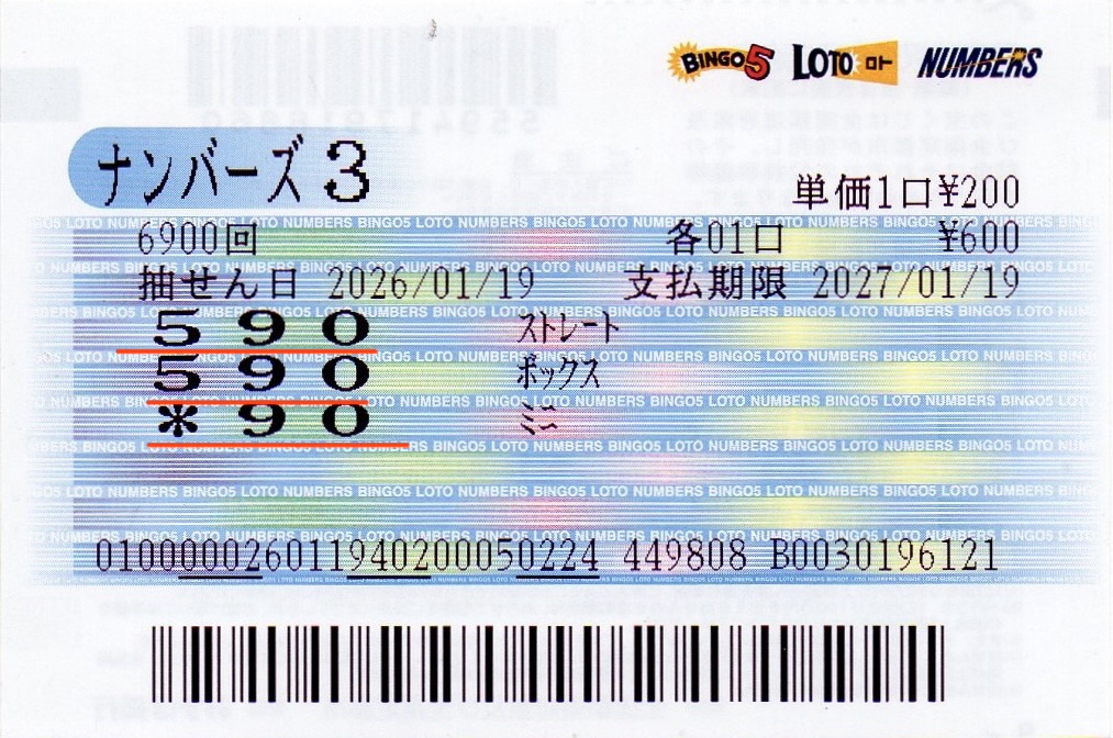 合計 19,200円 - 力丸専務第6905回 01/26 「6 4 3」