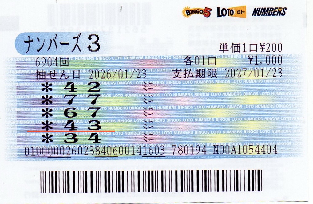 ミニ 6,000円 - 錦野第6904回 01/23 「4 4 3」