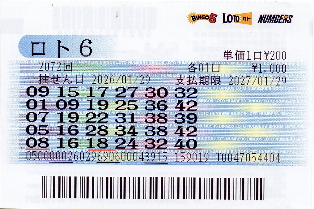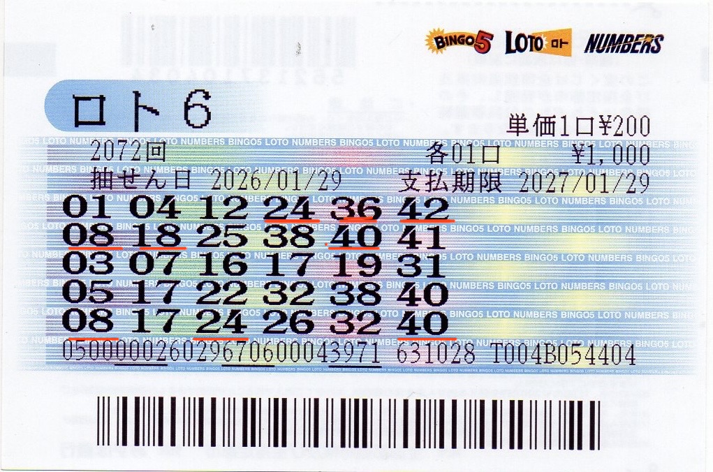 セットボックス 27,400円 - 錦野第2072回 01/29 「08 18 24 36 40 42 (43)」