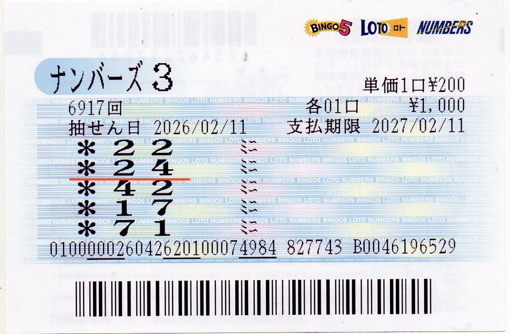 ミニ 7,700円×2口=15,400円 - 錦野第6917回 02/11 「2 2 4」