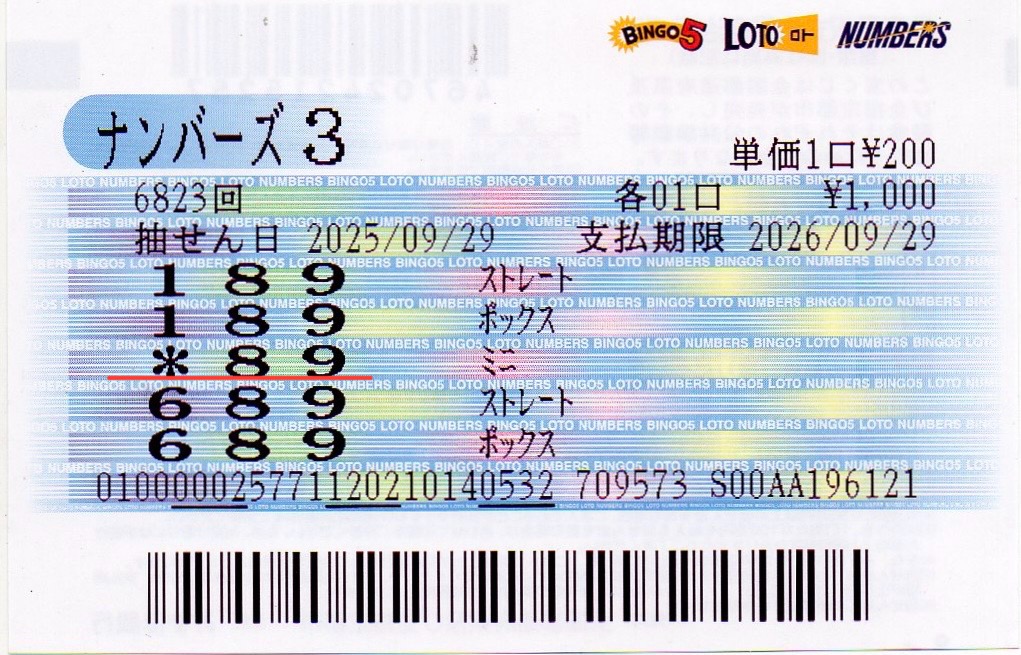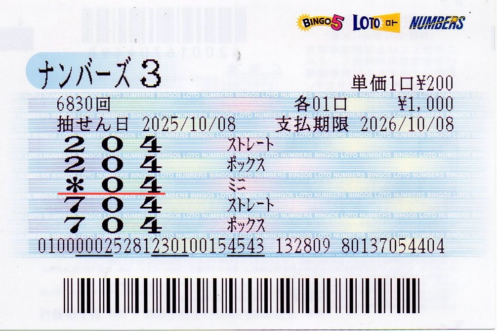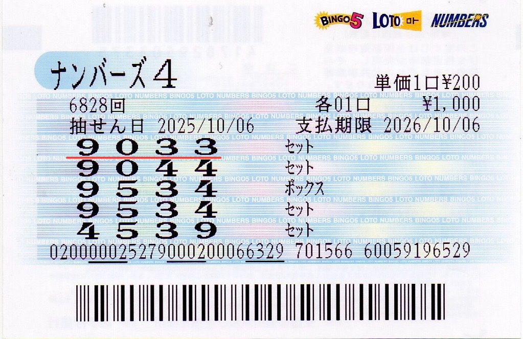 ミニ 9,700円×2口=19,400円 - 錦野第6804回 09/02 「0 5 3 8」