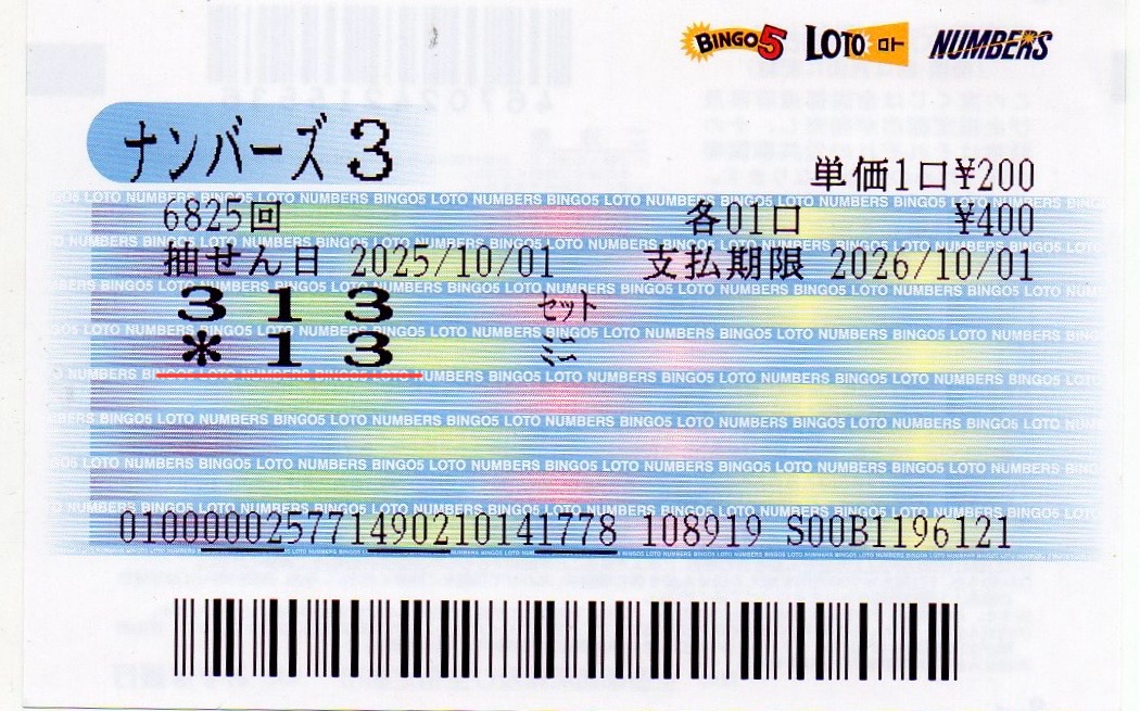 合計 172,000円 - 錦野第6825回 10/01 「2 1 3」