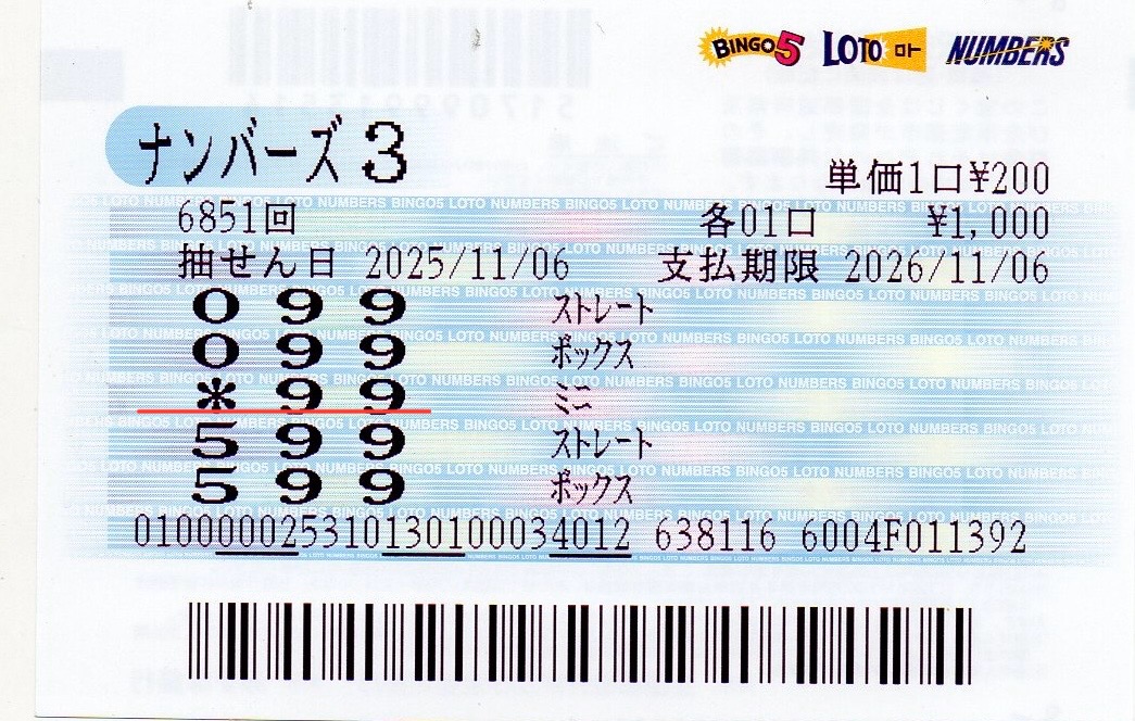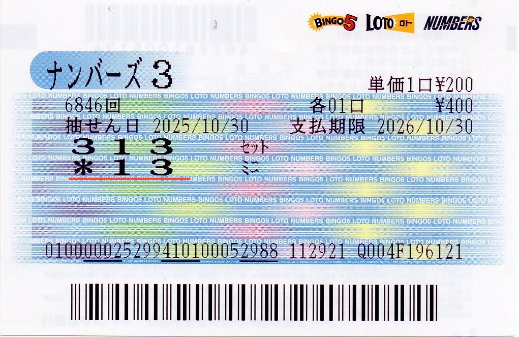 ボックス 7,600円 - 錦野第6846回 10/30 「0 1 3」