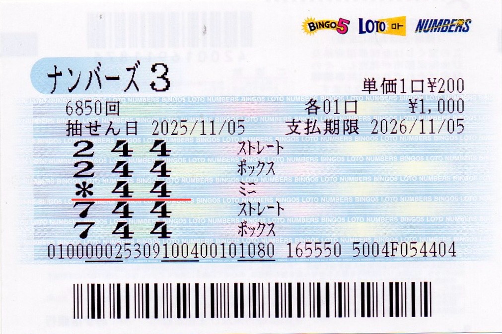 ミニ 6,200円 - 力丸専務第6850回 11/05 「3 4 4」