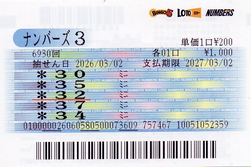 ミニ 8,300円 - 錦野第6835回 10/15 「3 7 4」